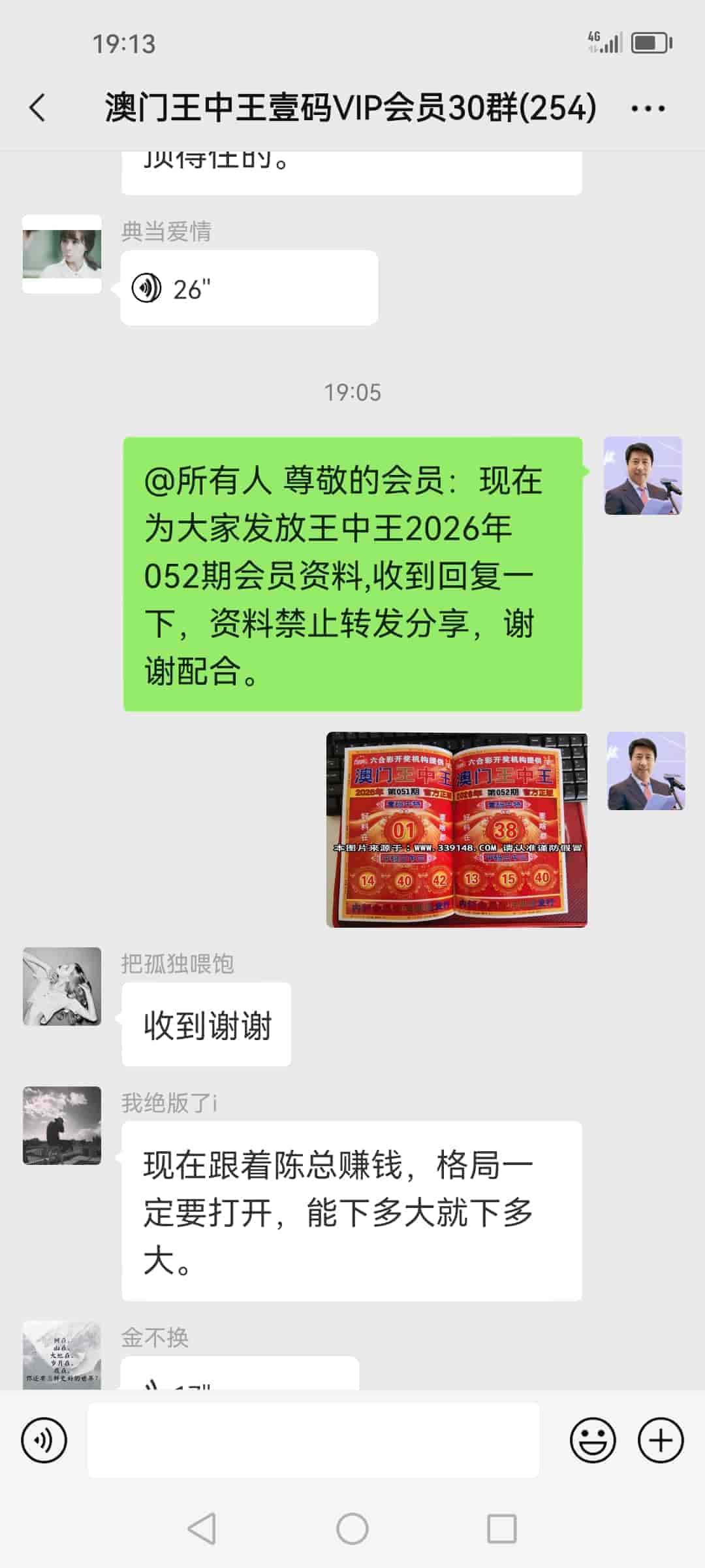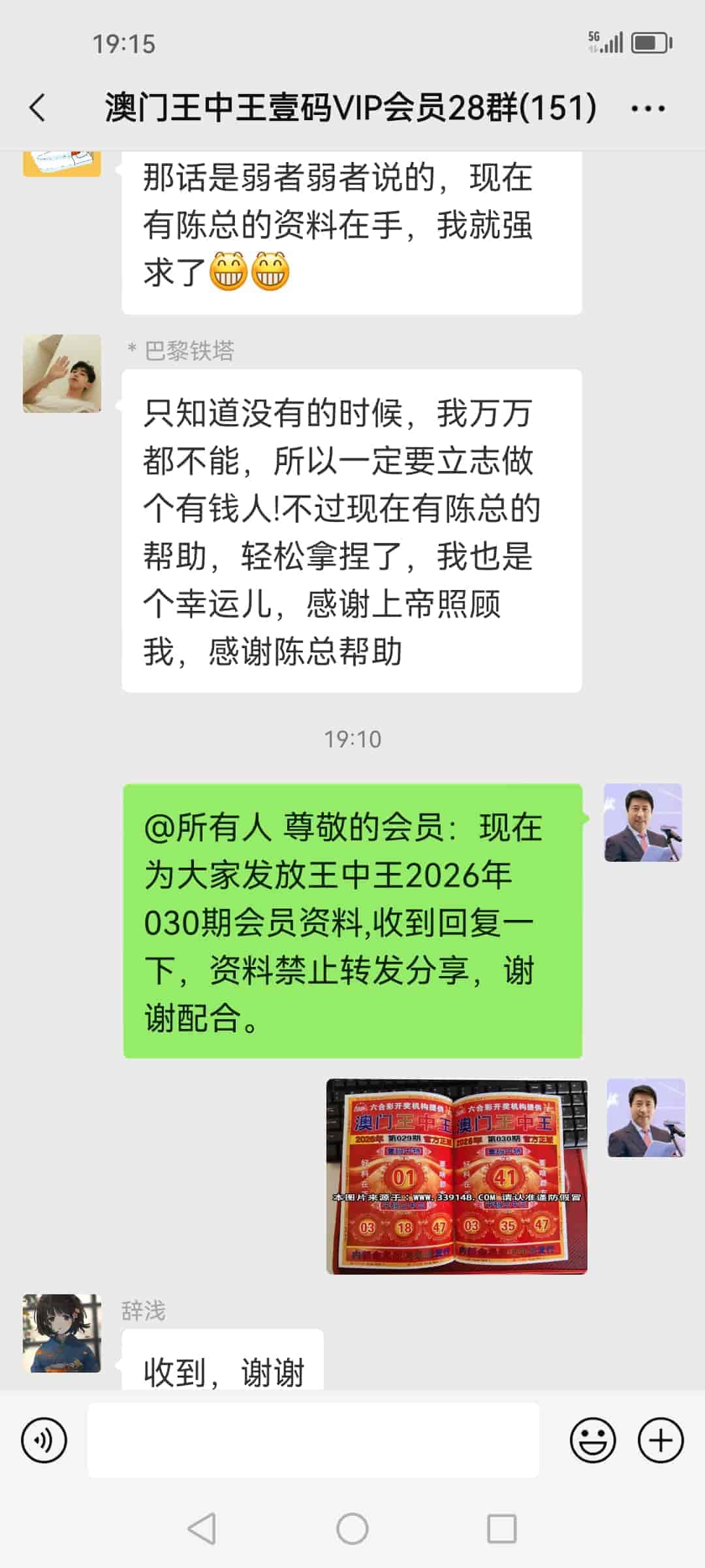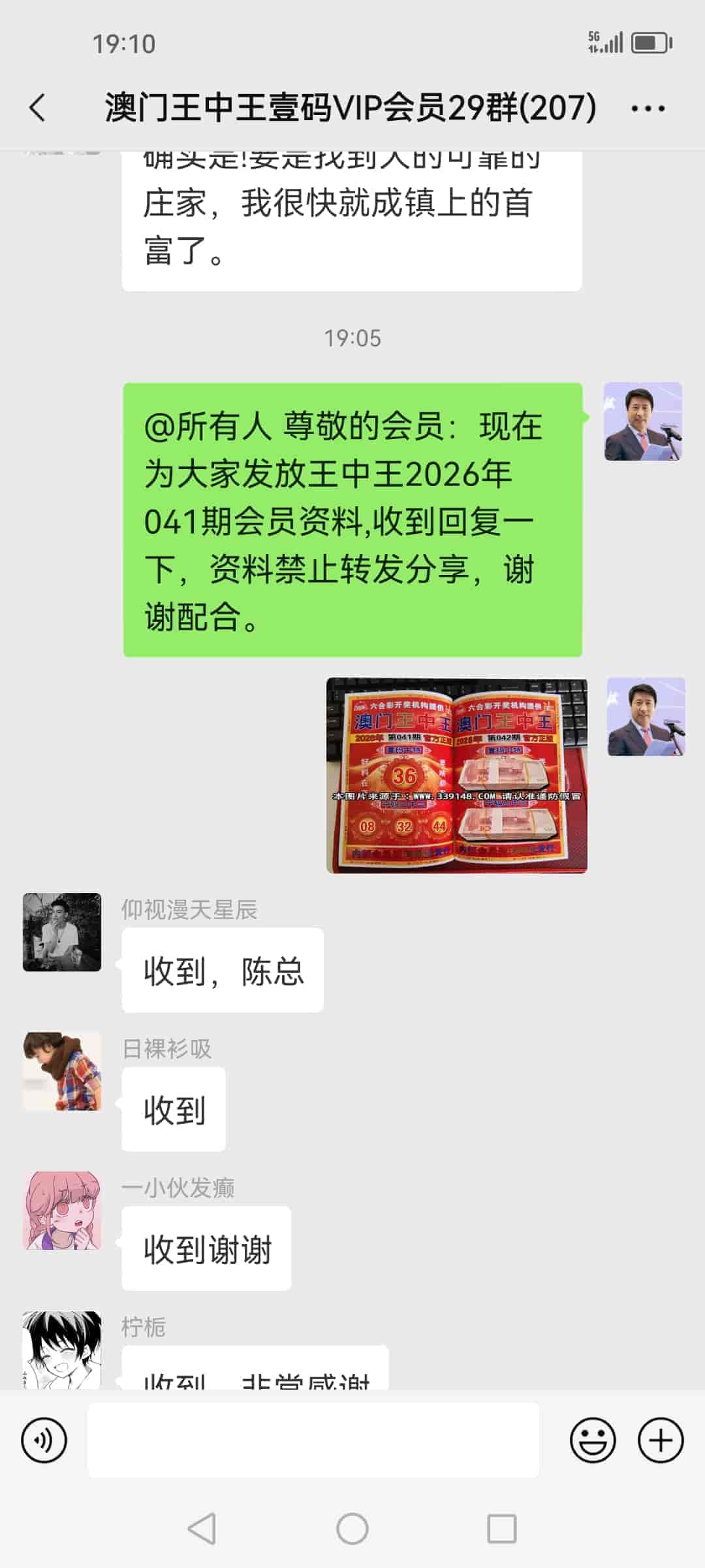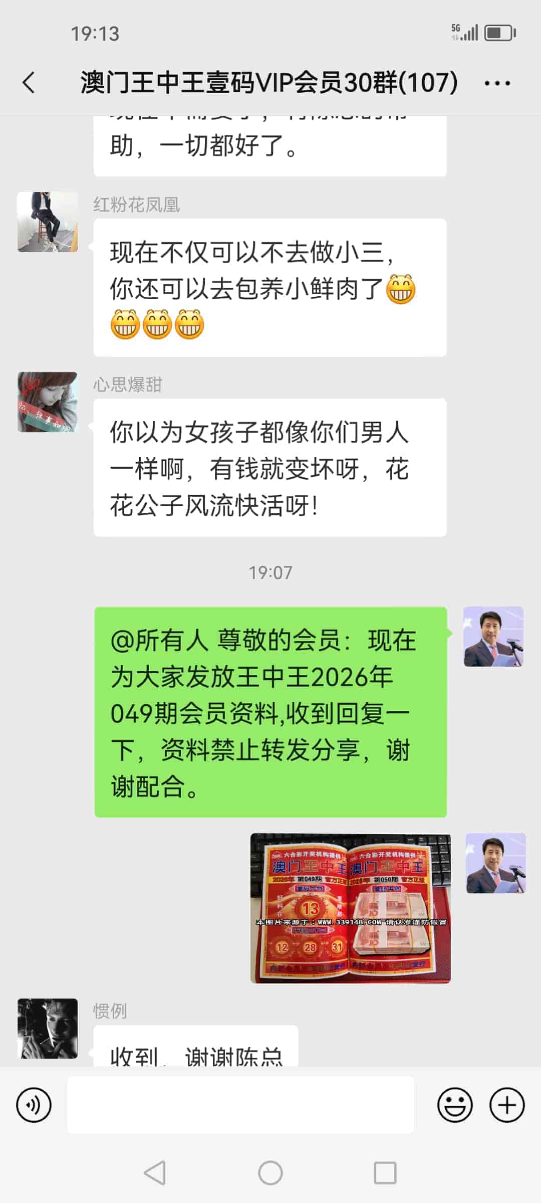 发表于42天前 上期的资料又大中,让我赚了20万多,加入会员到现在已经连中5期,也让我拥有了人生的第一桶金,真的很谢谢你陈总!一个小时前我已经汇了8万的红包到你的中国农业银行了,请查收。 |