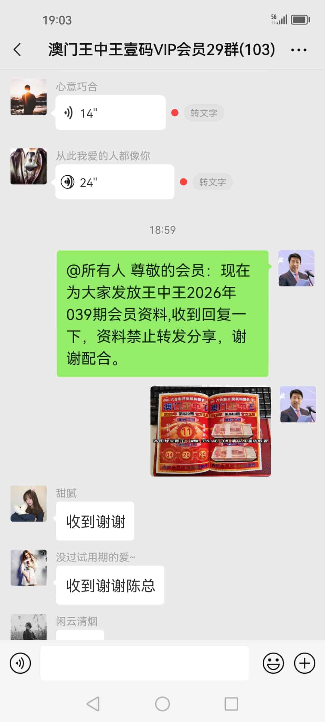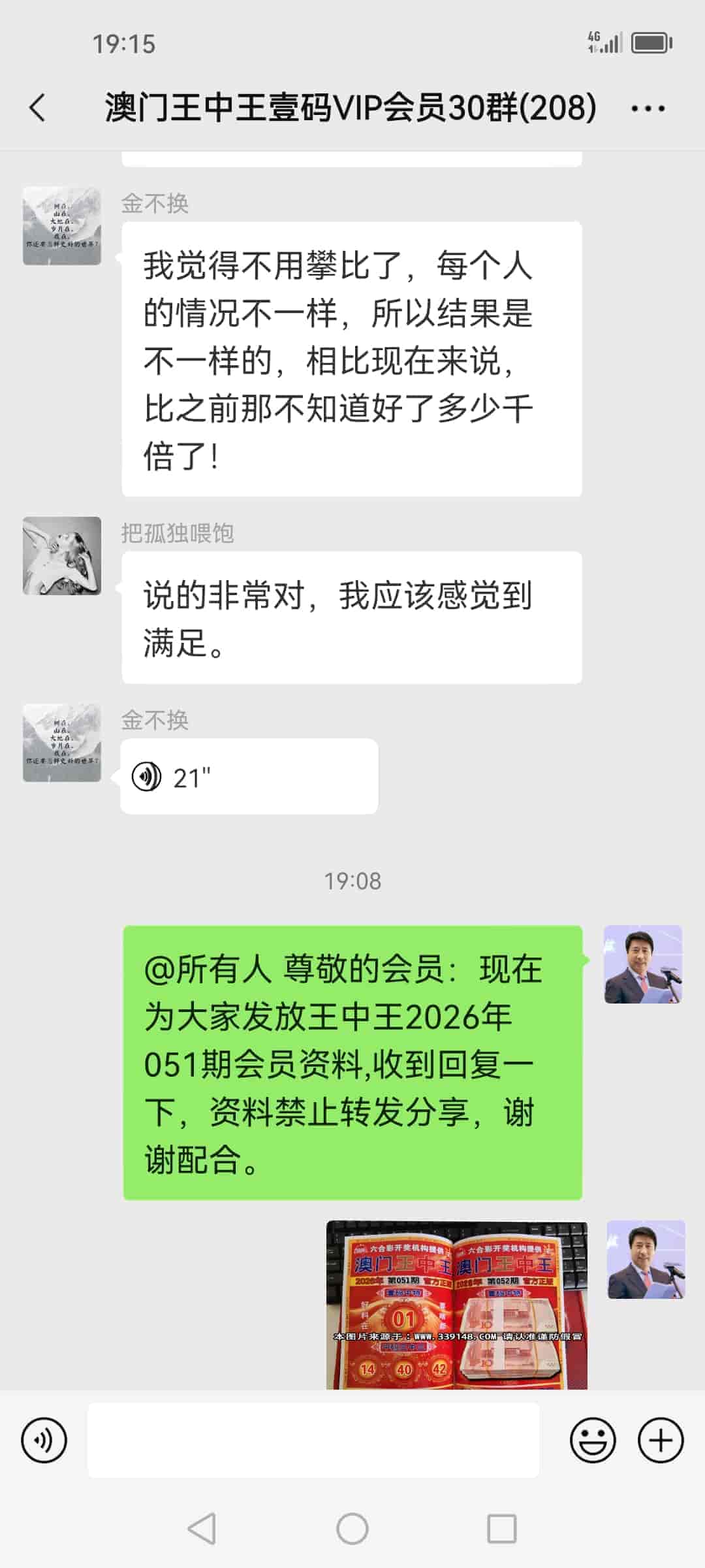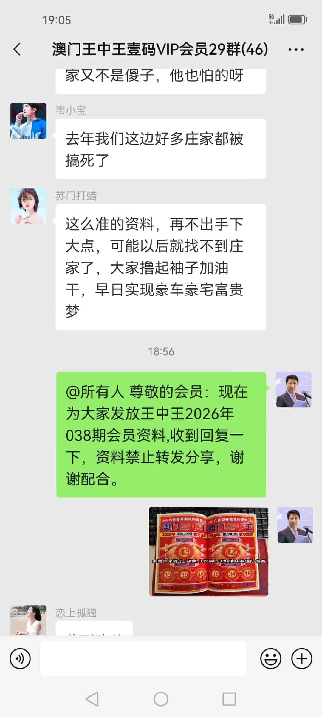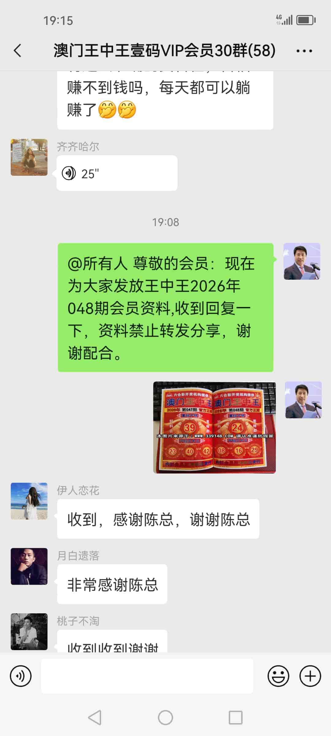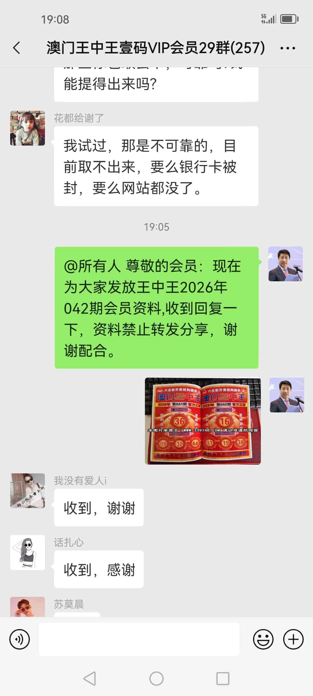 发表于42天前 上期的资料又大中,让我赚了20万多,加入会员到现在已经连中5期,也让我拥有了人生的第一桶金,真的很谢谢你陈总!一个小时前我已经汇了8万的红包到你的中国农业银行了,请查收。 |