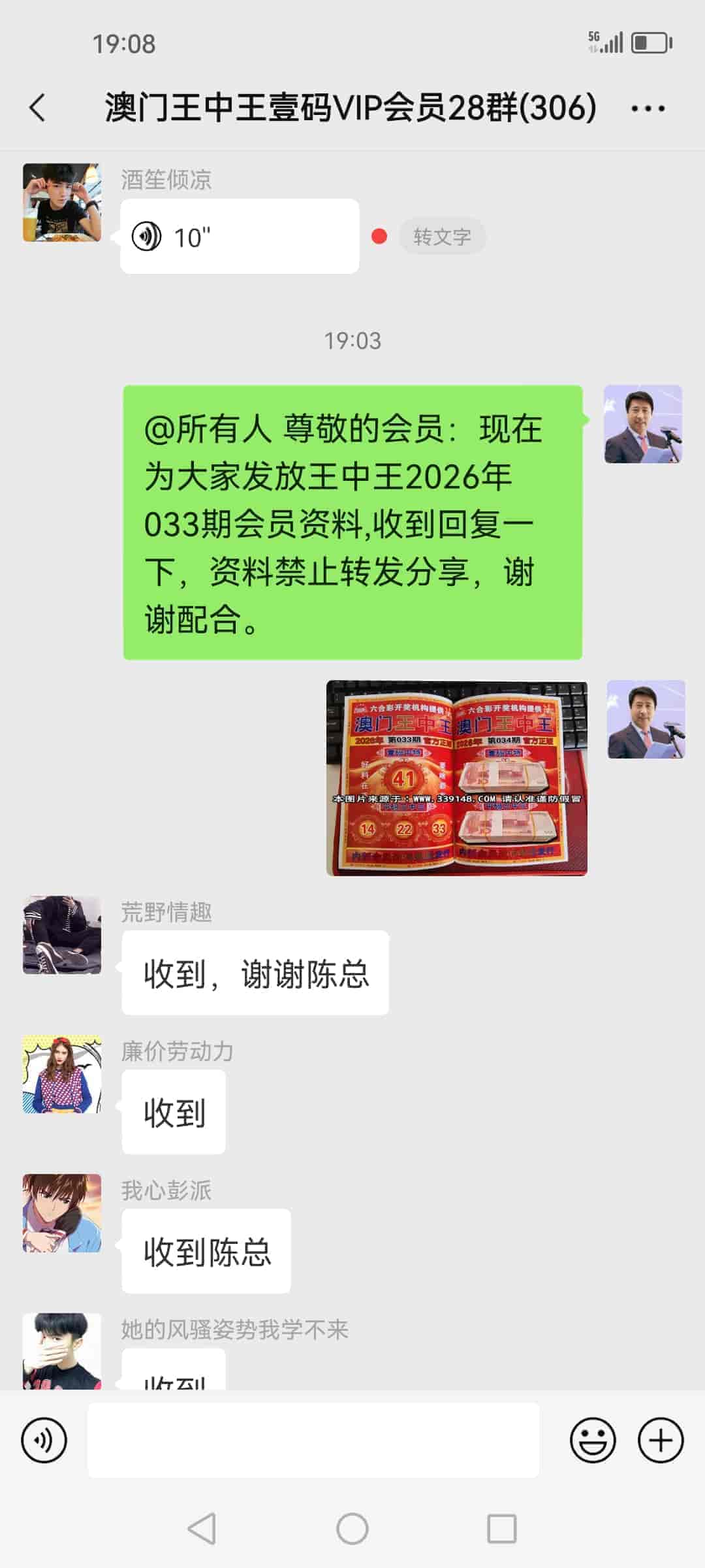 发表于11天前 陈总,我昨晚验证过你的资料, 昨晚也打了你的电话加了你的微信,说今天购买你的一码三中三的书,刚刚我在农村信用社转了798元过去了,麻烦陈总帮我办理好会员给我把书快递过来,今晚的资料先发到我手机上给我,我明天也给陈总汇个红包。 |