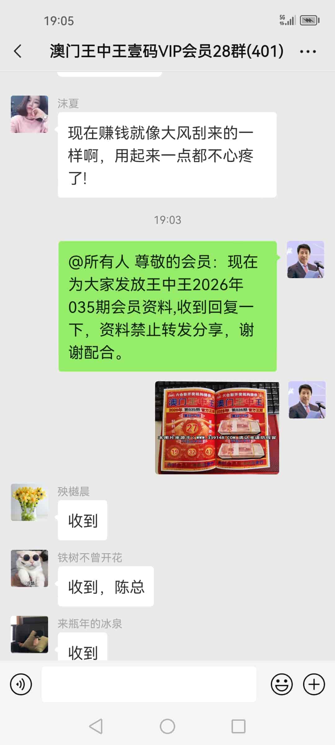 发表于5天前 陈总,真的牛逼,果然是内部资料,跟开奖号码一模一样,今晚又赢8万多,多谢陈总。 |