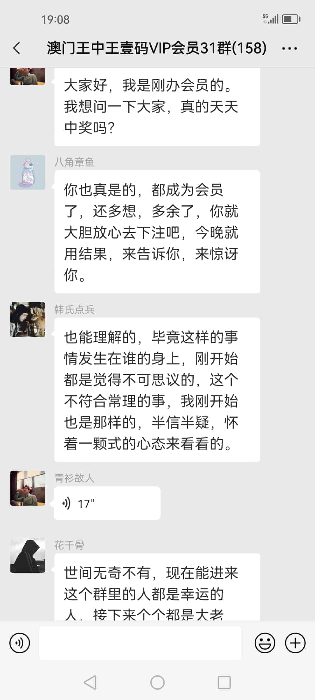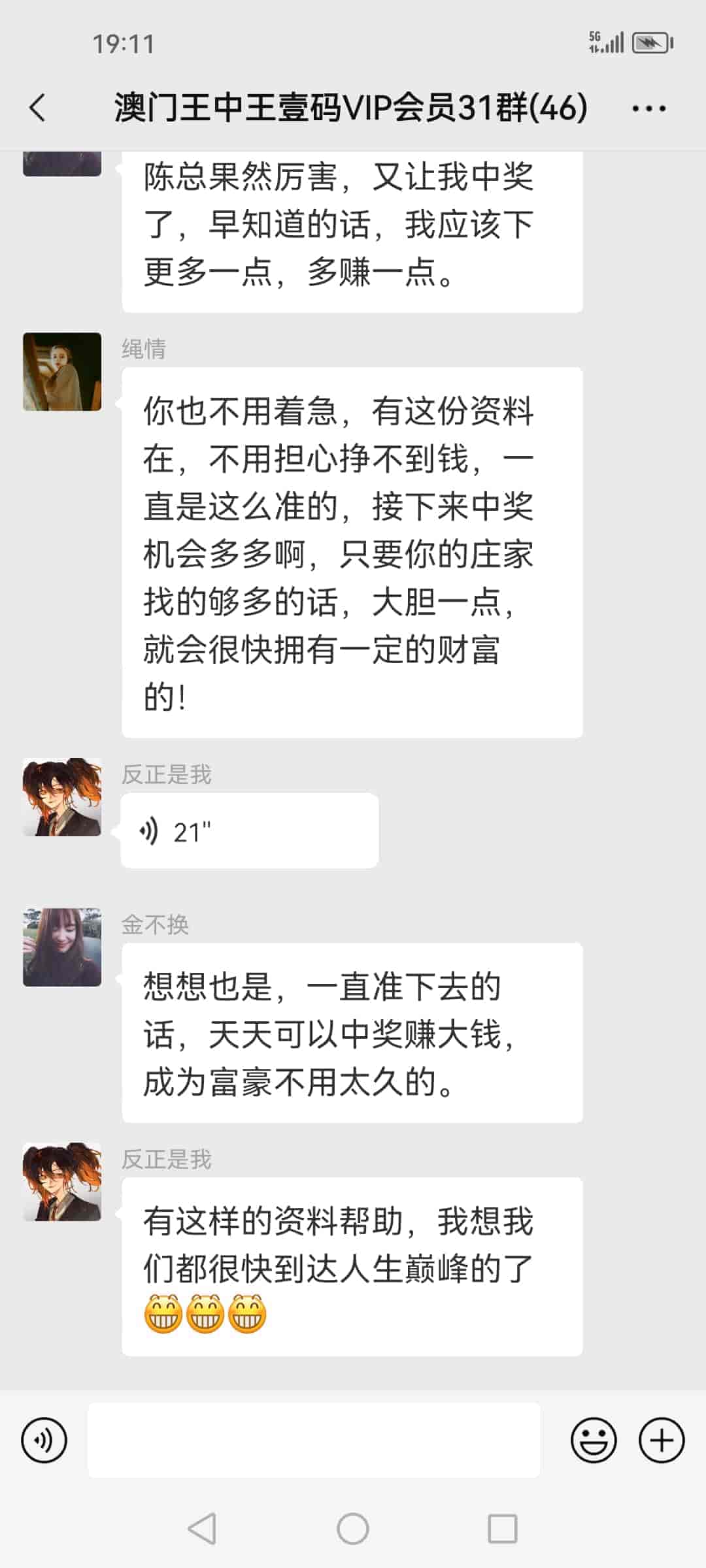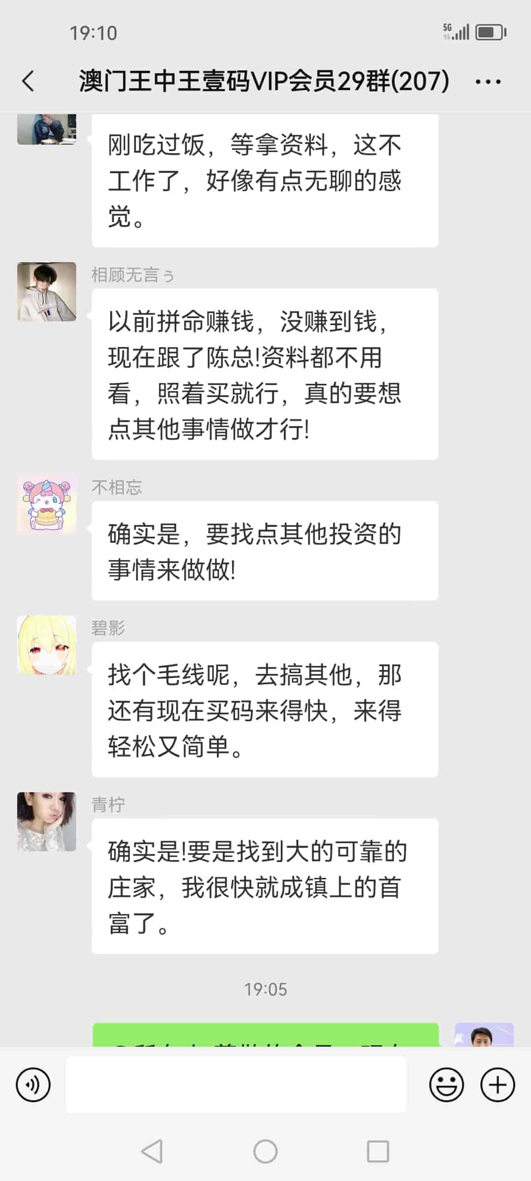 发表于51天前 陈总好,我姓欧阳,我刚刚通过扫一扫加了你的微信,也已经转了798块合作费过去给你了,我是真心诚意跟你合作的,我玩六合彩已经7.8年了,都是输的多,几乎把所有的工资都输光了,老家还欠朋友一屁股债,请陈总你帮帮我,我做人懂得知恩图报,到时候我也一定给你红包的,合作愉快。 |