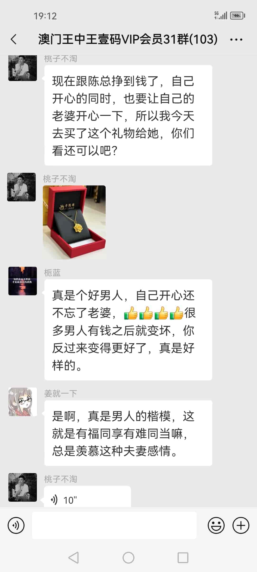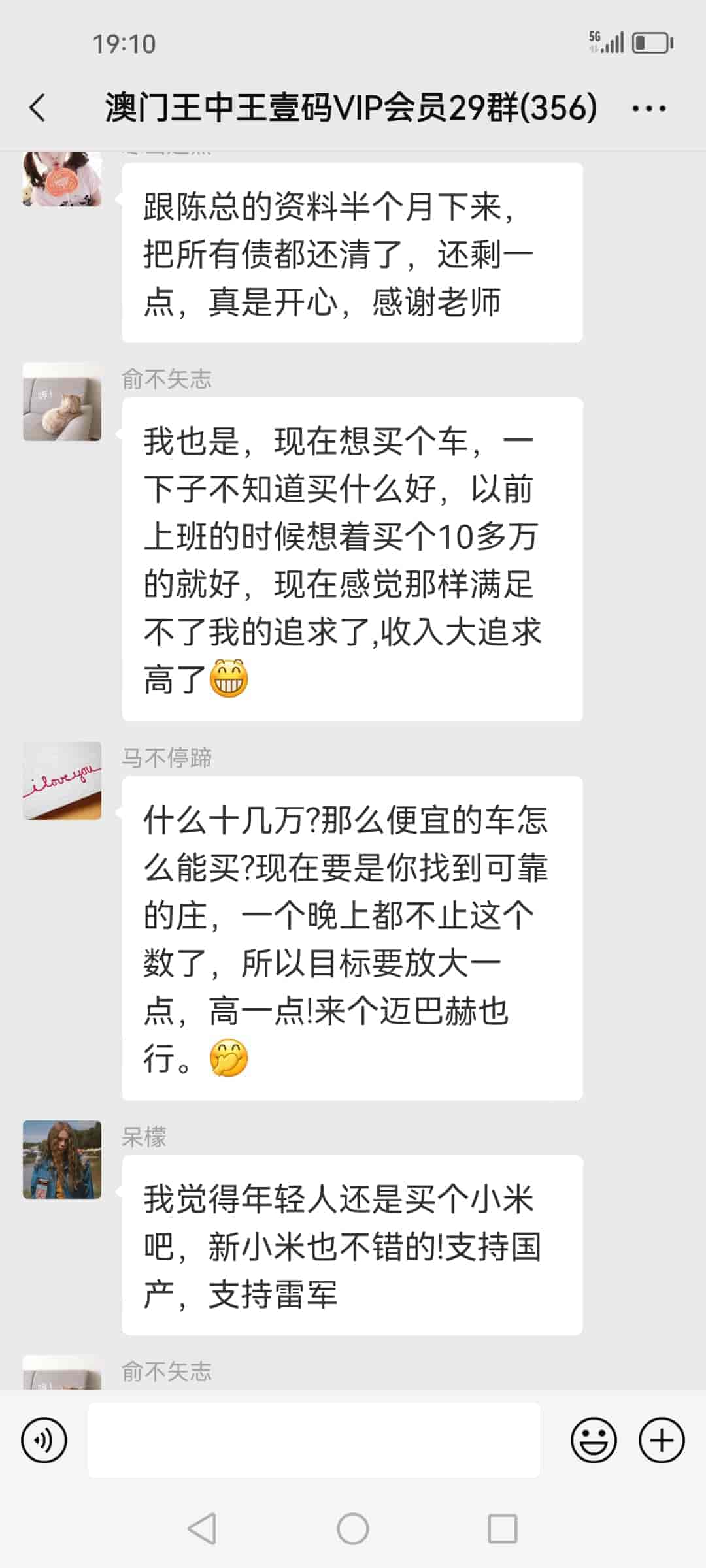 发表于39天前 陈总晚上好,跟着你的一码三中三到现在欠亲戚朋友的钱都已经还清了,昨晚又中了十几万,从今晚开始赚多少钱都是我自己的了,刚刚给您转了两万元红包,希望陈总不要嫌弃。 |