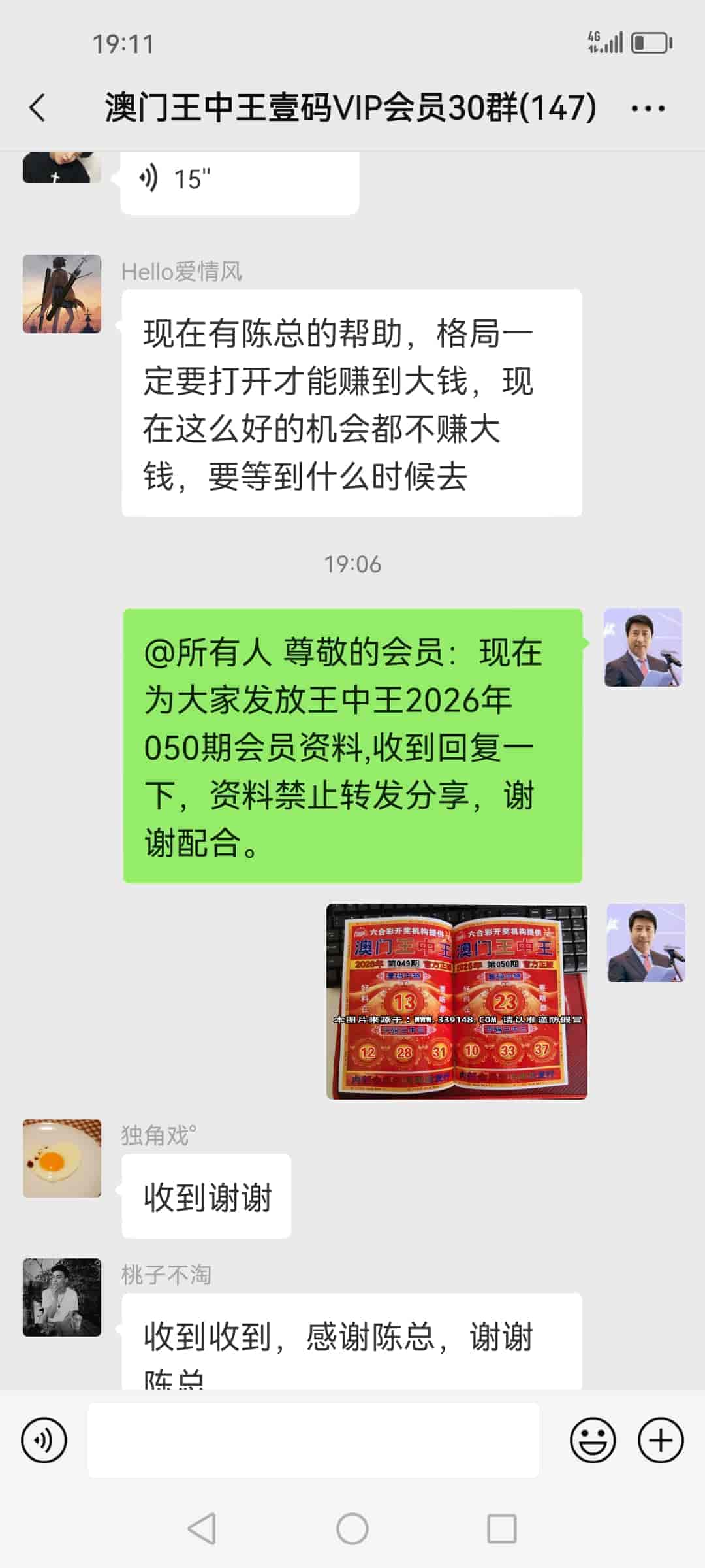 陈总你好,我是广西的何俞林跟着你的书籍资料下注已经有9期了,现在不单单把输出的30万赢了回来还转了50多万,说句心理话没有你就没有我的今天,昨晚中了奖今天下午那些庄家才陆陆续续的赔钱给我,刚刚给你转了19000元红包感谢你的,你查收一下,等我有时间一定亲自登门感谢。 |