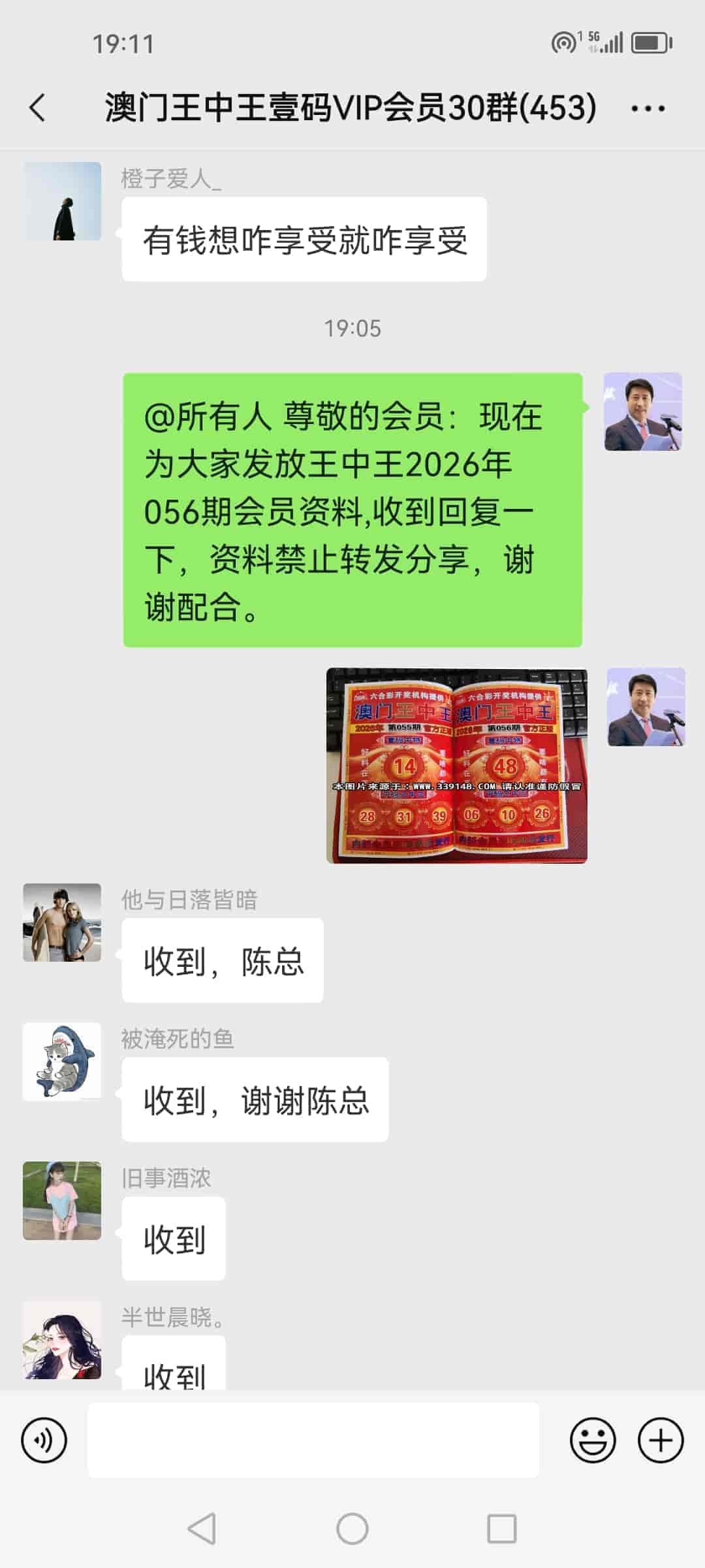发表于17天前 几天前朋友就把这个网站推荐给我,叫我找陈总您合作说您的资料准,我也关注了好多天了。也验证了几期, 陈总的资料确实很准,等下班回家就找您办理会员入会。 |