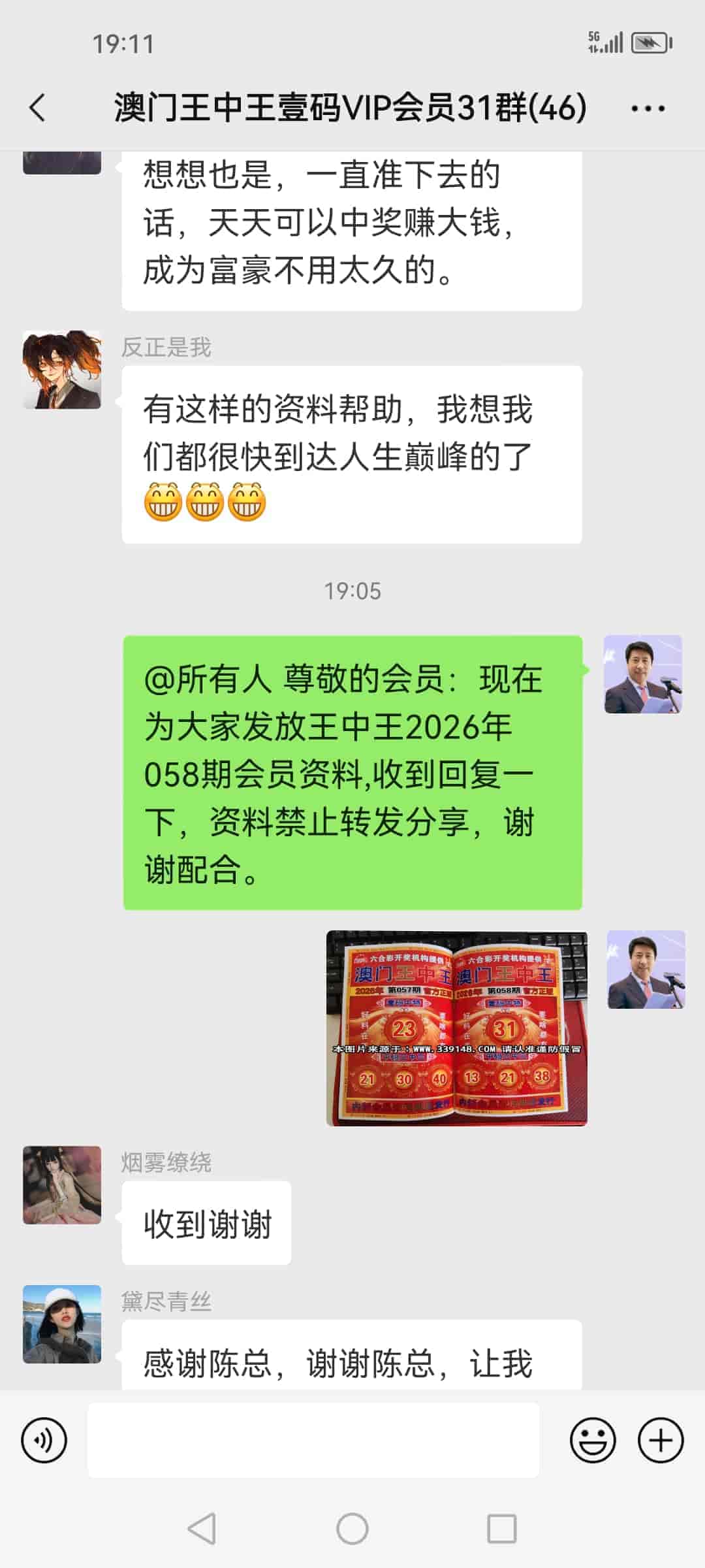 发表于55天前 陈总你好,我一直以来都以为网上的资料都是假的骗人的,看来我是错了,经过三期的验证我也确认了您的资料确实是内幕资料,798元已经打到你发给我的卡上了,明天帮我快递一本过来,谢谢陈总。 |