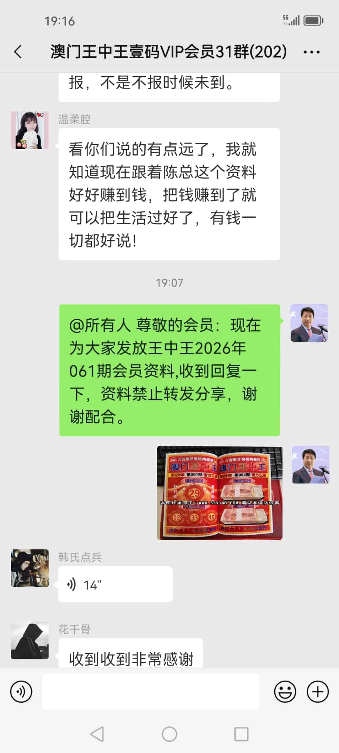 发表于3天前 刚刚到庄家这里拿钱,昨晚中了十几万,等下我去银行存钱给您发个红包过去,谢谢陈总,谢谢你的资料真的准 |