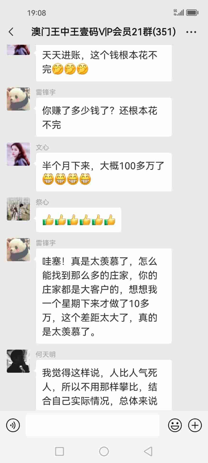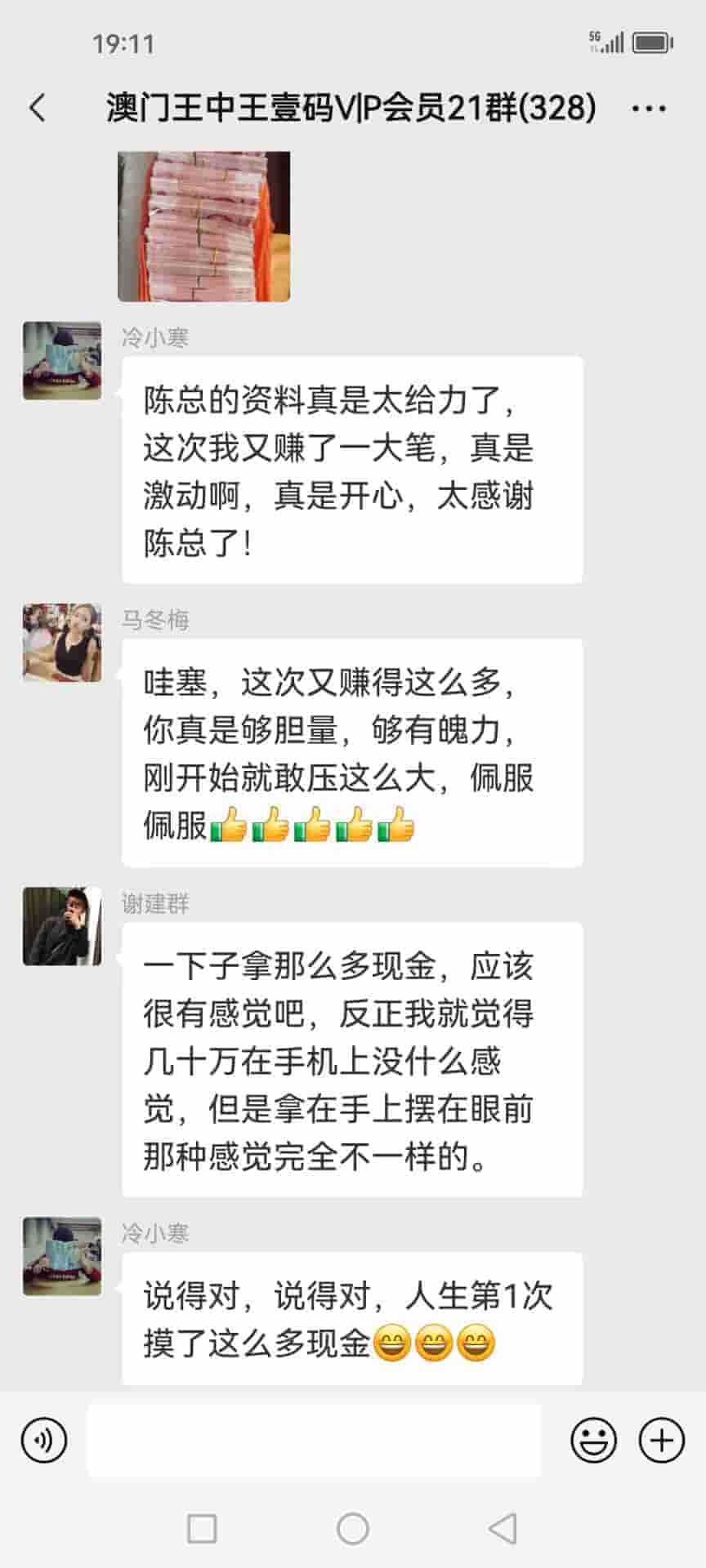发表于20天前 陈总你的资料太准了,昨晚下的注比较大,现在我就在庄家这里等着拿钱,真的太爽了,我这里庄家很有钱,等会就给我了,趁着数钱时间偷偷来你网站回个帖,哈哈哈哈,说真的购买你的资料才6期的时间就把输的钱赢回来了,还赚了几十万,以后就跟着你赚钱了,红包少不了你的,等会去存钱的时候给你汇个58000的红包。感谢 陈总的帮助。 |