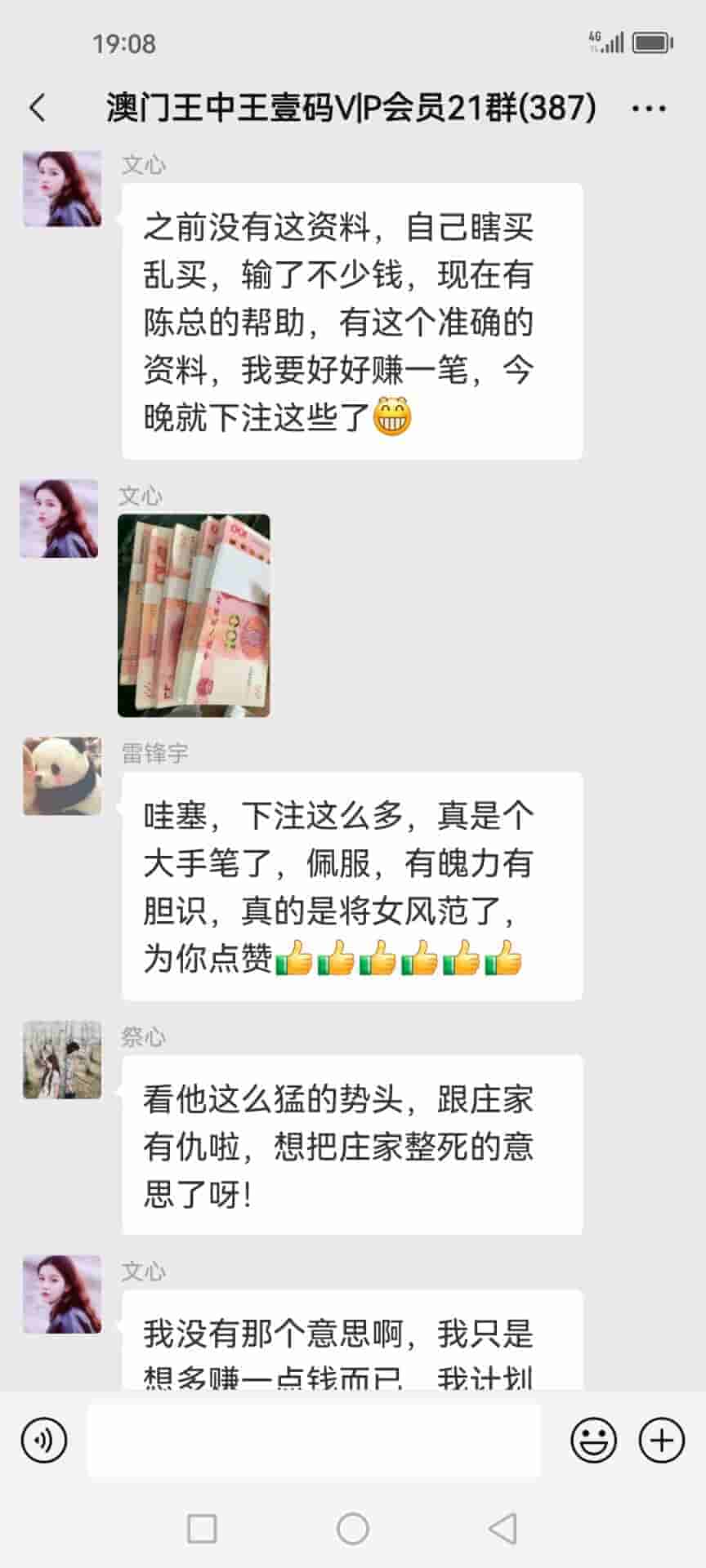 发表于43天前 资料真的太准了,昨晚又中了。你的为人也真诚,我加入会员一码三中三连续大中三期,三期我就赚了二十几万,我做梦都没有想到自己能有那么多钱,刚开始我还怀疑你,在此我对你说声抱歉,但是你用你的真诚和实力证明了一切,让我深深折服,以后我只信你陈总,合作愉快,等会红包打你卡上,你查收下。 |