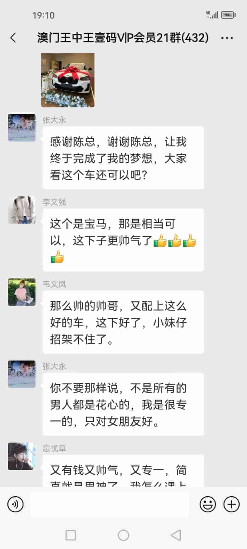 发表于35天前 陈总下午好,今天全款买了人生中的第一辆车,真的很开心迫不及待的想跟你分享一下这份喜悦,一个多月前我还是一个一无所有的打工仔,现在不但有几百万的存款还买了宝马真的觉得这一切是在做梦。感谢陈总。 |