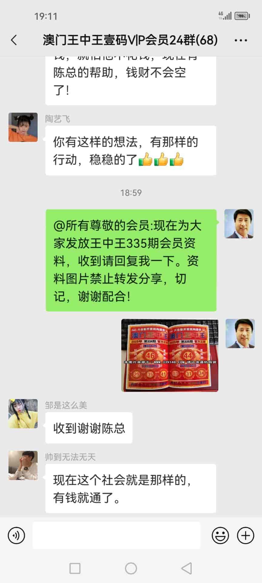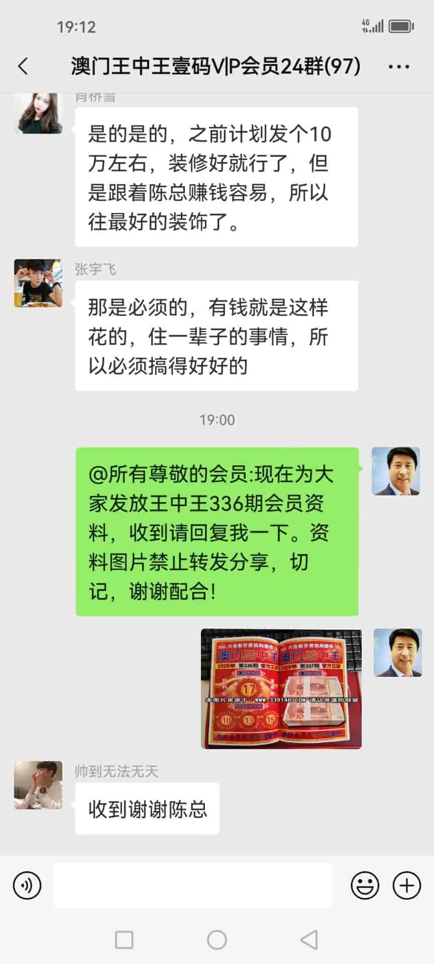 发表于5天前 陈总你的资料太准了,昨晚上下注的钱已经拿到了,购买你的一码三中三书籍才几期就把以前输的钱给赢回来了,还赚了不少,等下去银行存钱给你汇个20000元的红包,感谢陈总的帮助。 |