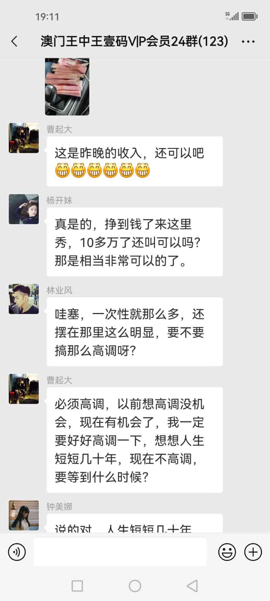 发表于40天前 陈总,我领到昨晚中的钱了,两个庄家赔的都是现金十多万,其他两个庄家是微信转账的,刚刚给陈总转了16800的辛苦费,陈总辛苦了,谢谢您的一码三中三改变了我的人生,说句不怕您见笑的话,我一辈子都没见过这么多钱。 |